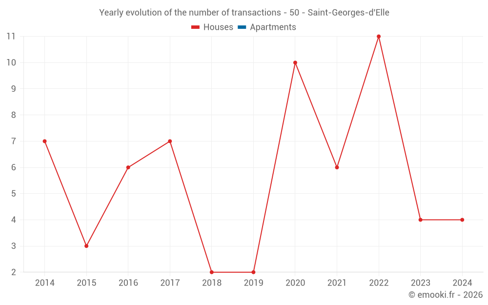 Real estate price map in the municipality of Saint-Georges-d'Elle, choose a section to see transactions by parcel.