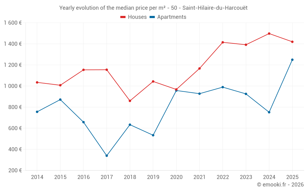 What is the price per m2 of apartments in Saint-Hilaire-du-Harcouët?
