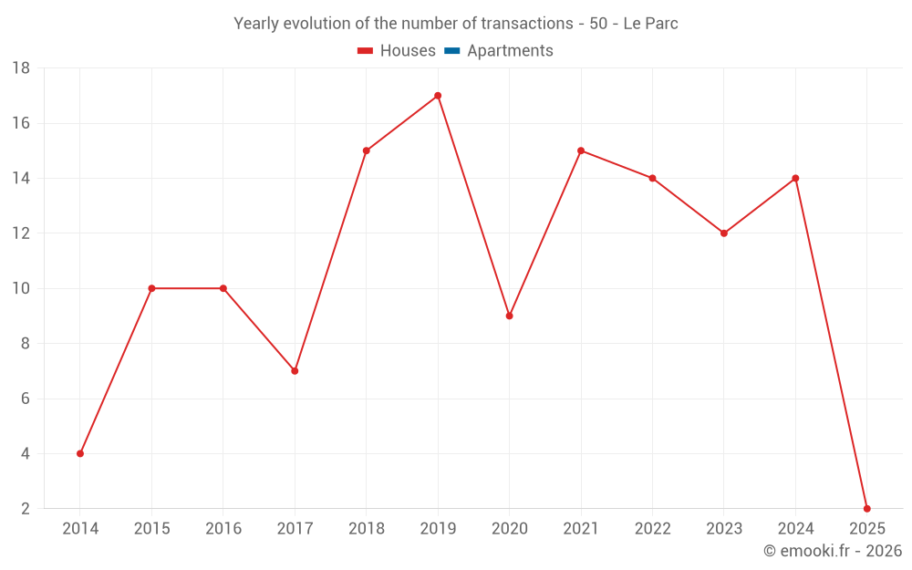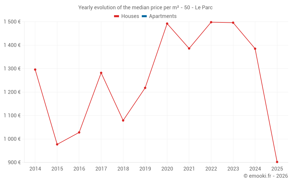 The median price on the 24 house transactions of the last 24 months in the municipality of Le Parc was 1 370 € per square meter for a median property value of 112 500 €. Over this period, 60% of transactions were between 740 and 1 599 € per square meter (from the 2nd to the 8th deciles).