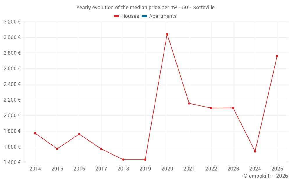 Evolution of the median price per m² of houses
