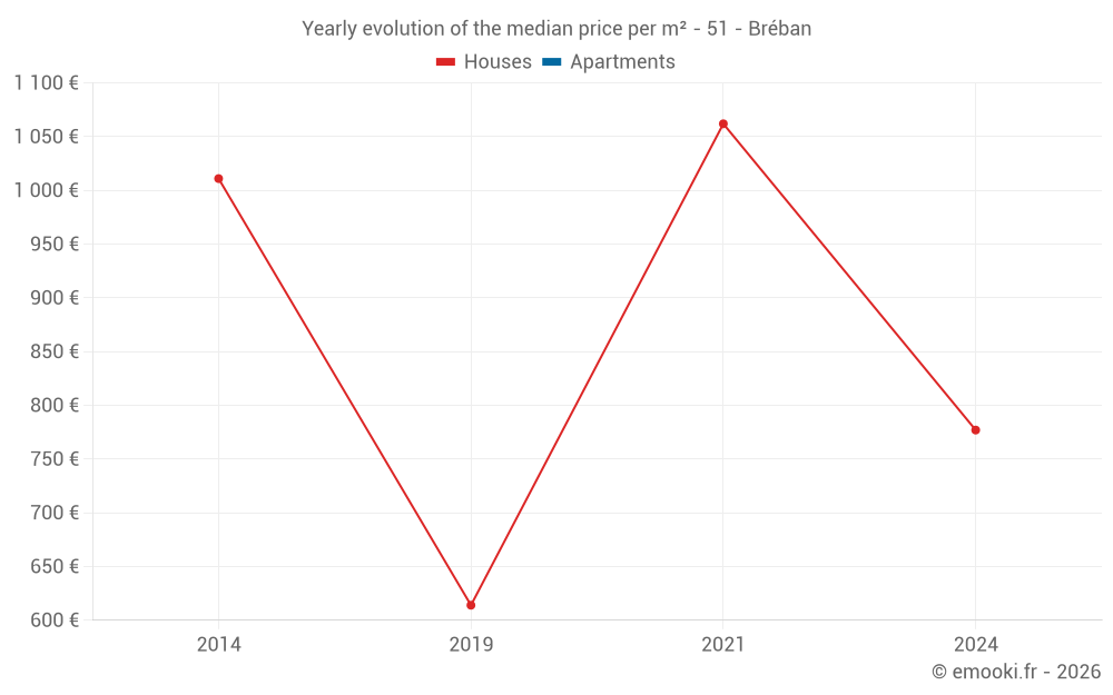 Evolution of the median price per m² of houses