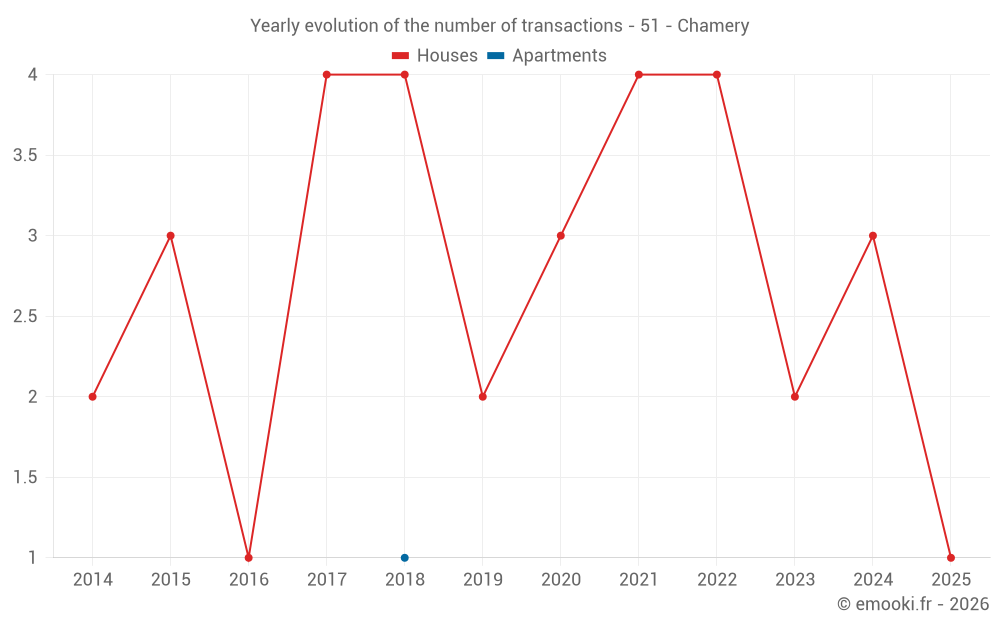 Real estate price map in the municipality of Chamery, choose a section to see transactions by parcel.