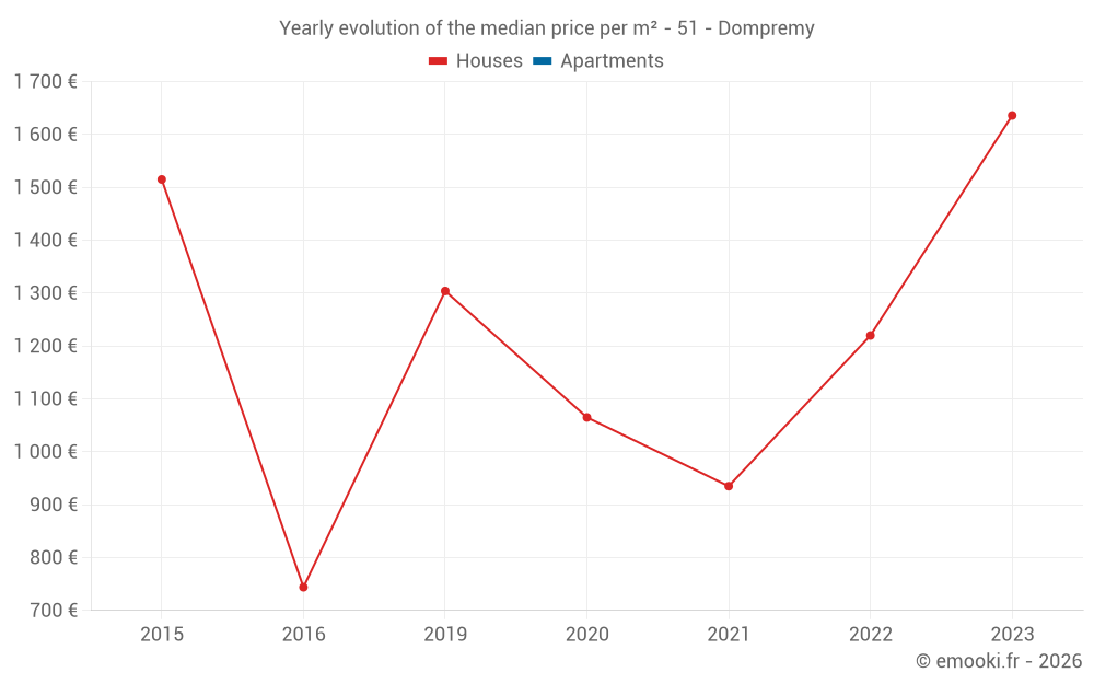 Real estate price map in the municipality of Dompremy, choose a section to see transactions by parcel.