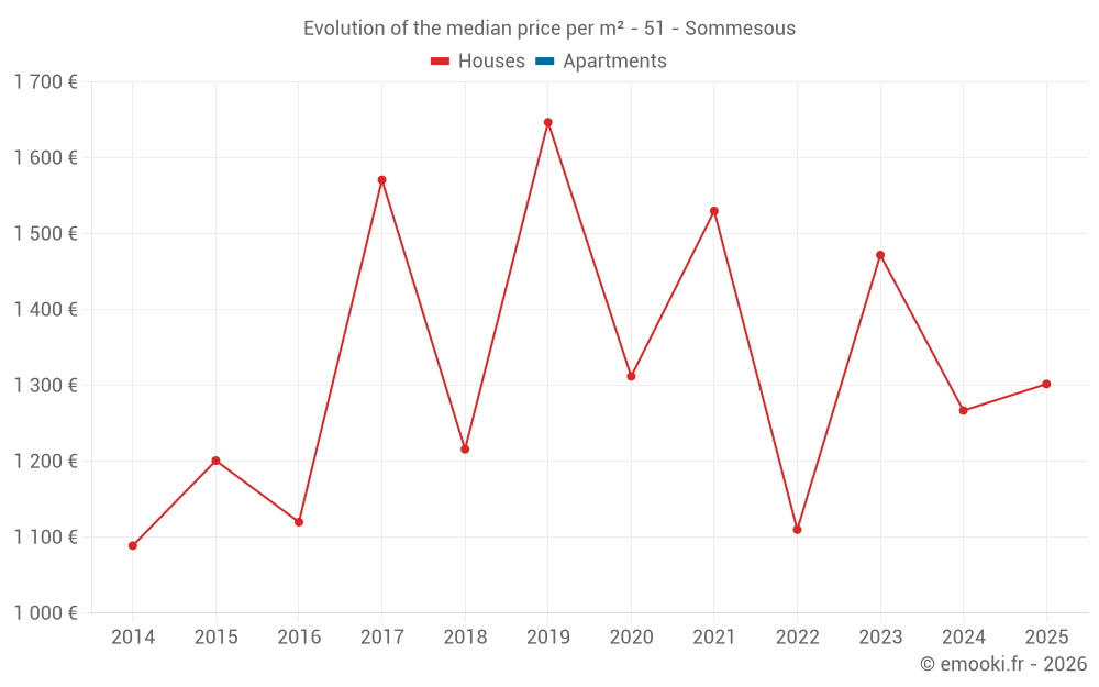 Real estate price map in the municipality of Sommesous, choose a section to see transactions by parcel.