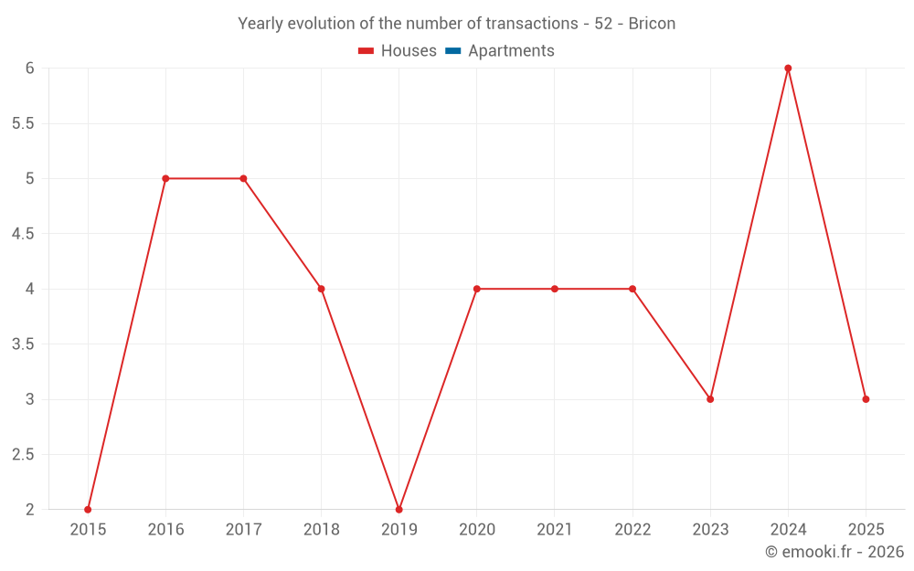 Real estate price map in the municipality of Bricon, choose a section to see transactions by parcel.