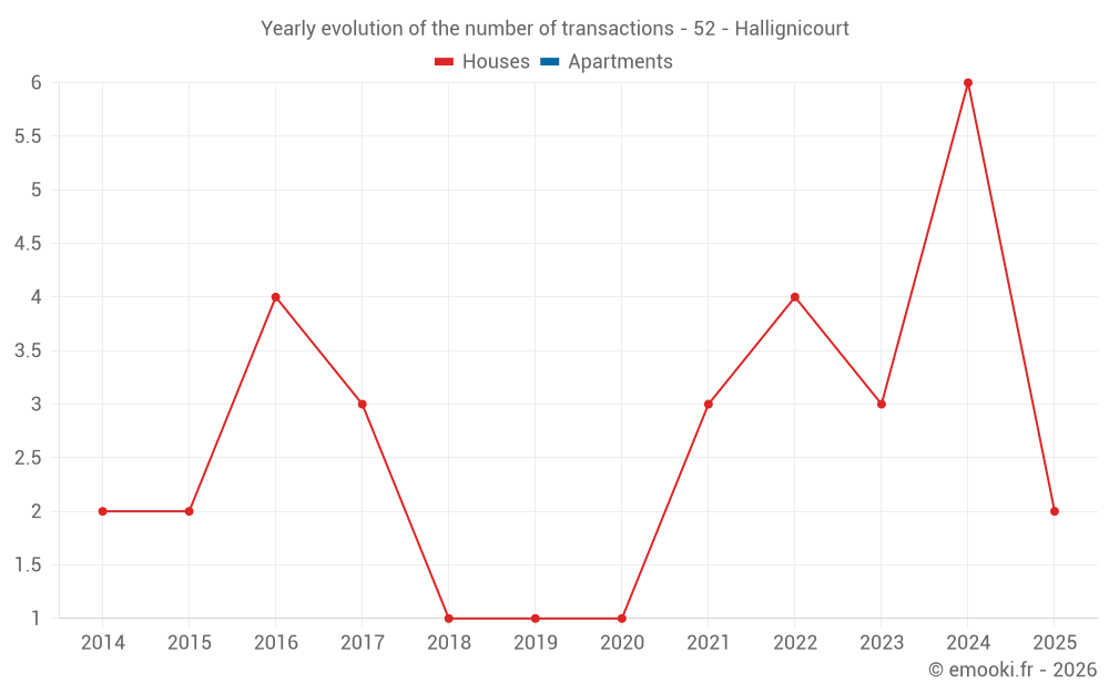 Real estate price map in the municipality of Hallignicourt, choose a section to see transactions by parcel.