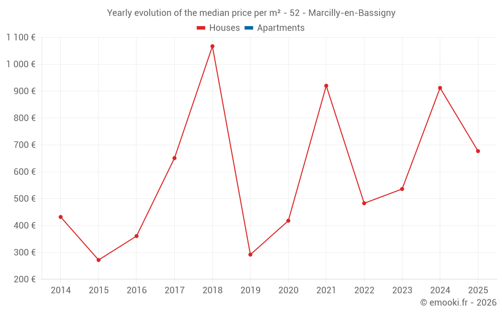 The price per m² of houses has decreased by 26% since 4 years, but it has increased by 149% in 10 years.