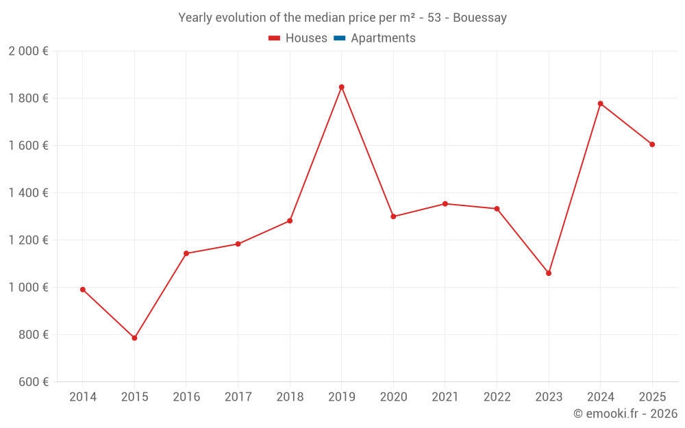 Real estate price map in the municipality of Bouessay, choose a section to see transactions by parcel.