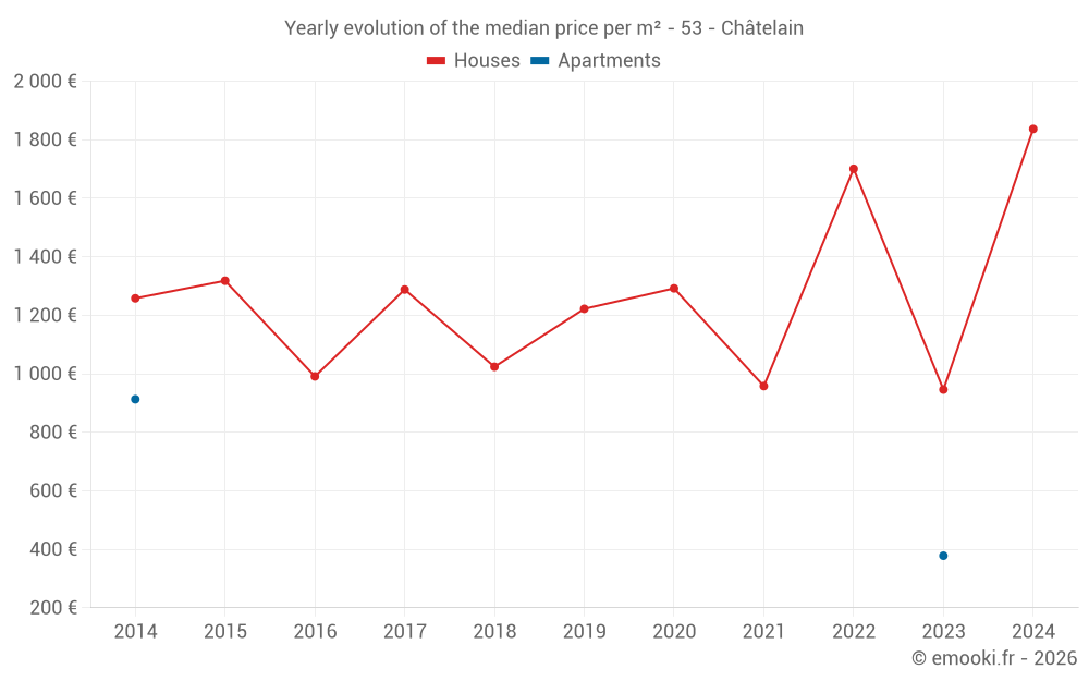 Evolution of the median price per m² of houses