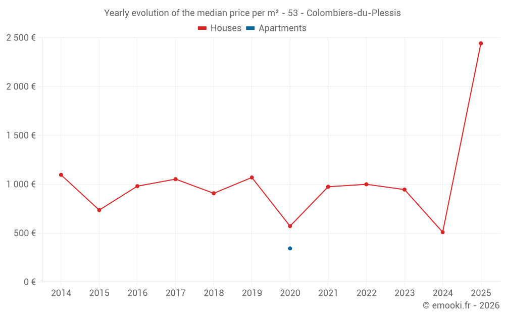 Evolution of the median price per m² of houses