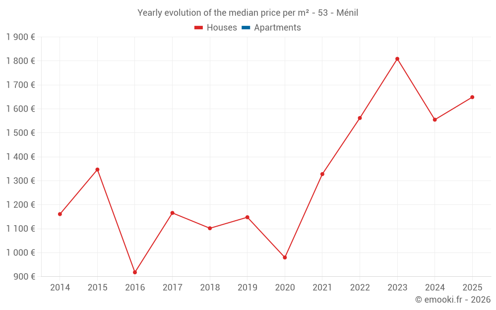 What is the price per m2 of houses in Ménil?
