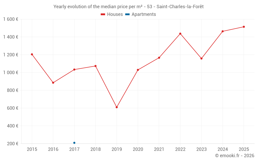 Real estate price map in the municipality of Saint-Charles-la-Forêt, choose a section to see transactions by parcel.
