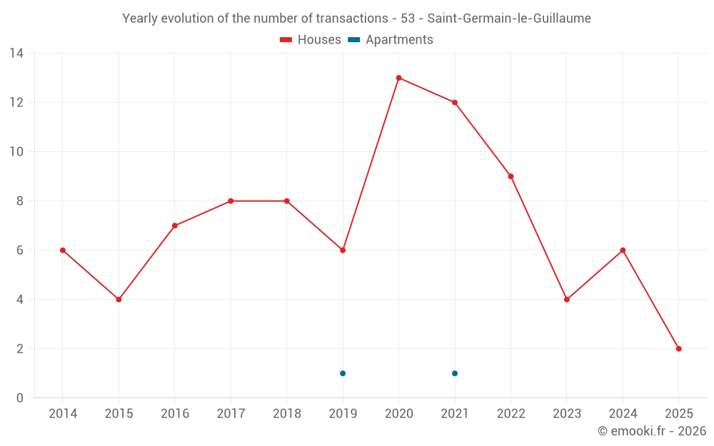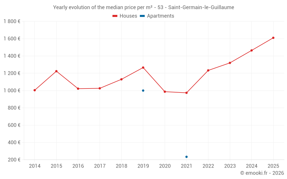Real estate price map in the municipality of Saint-Germain-le-Guillaume, choose a section to see transactions by parcel.