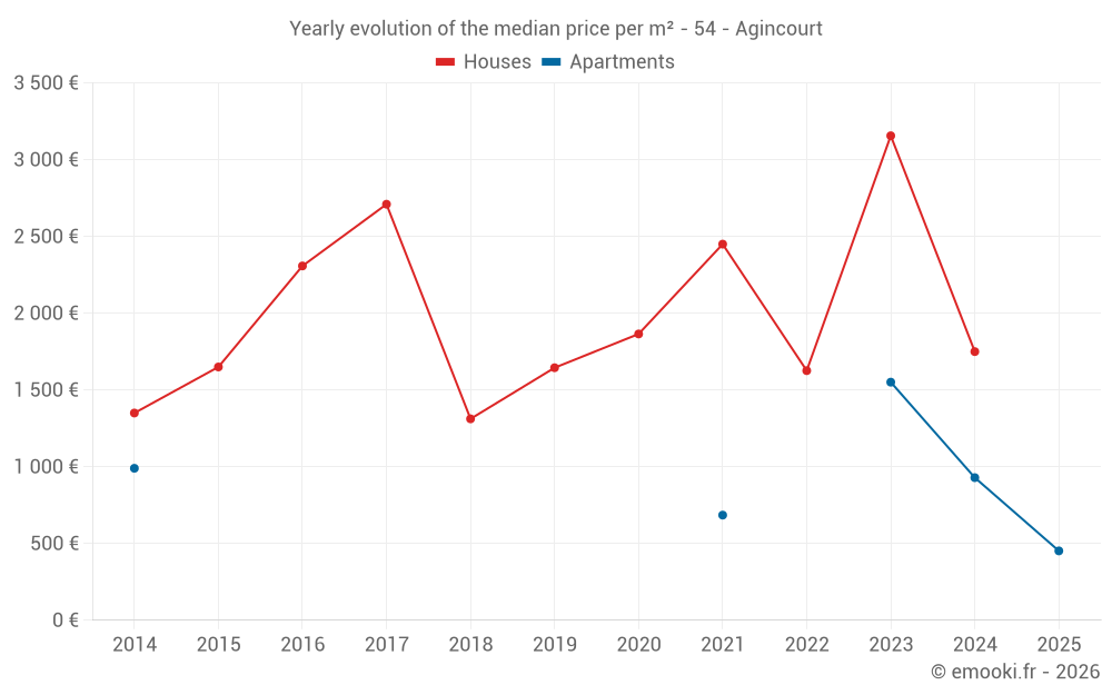 Evolution of the median price per m² of houses