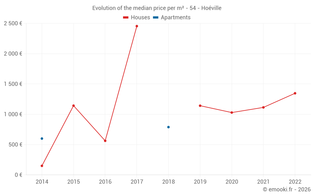 Evolution of the median price per m² of houses