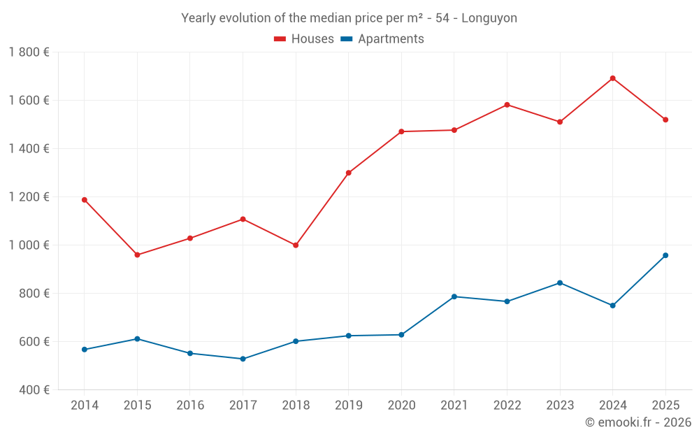 What is the price per m2 of houses in Longuyon?
