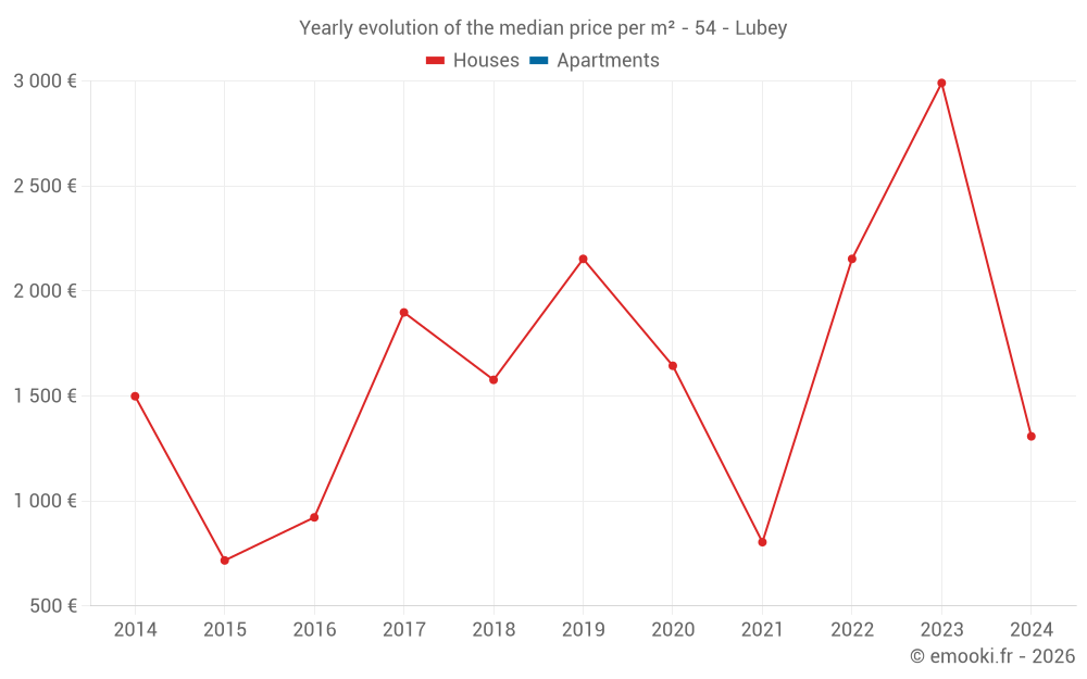 Real estate price map in the municipality of Lubey, choose a section to see transactions by parcel.