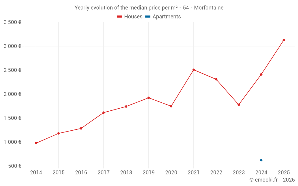 Real estate price map in the municipality of Morfontaine, choose a section to see transactions by parcel.