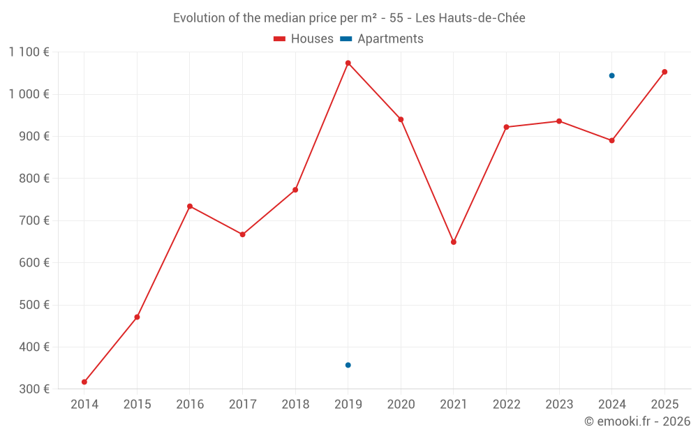 Price per m² in Les Hauts-de-Chée