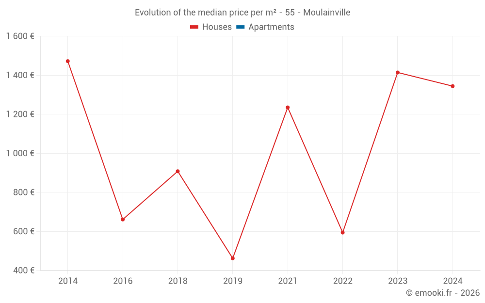 Real estate price map in the municipality of Moulainville, choose a section to see transactions by parcel.