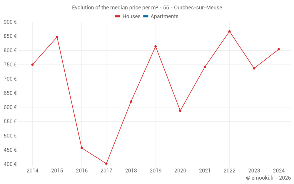 Real estate price map in the municipality of Ourches-sur-Meuse, choose a section to see transactions by parcel.