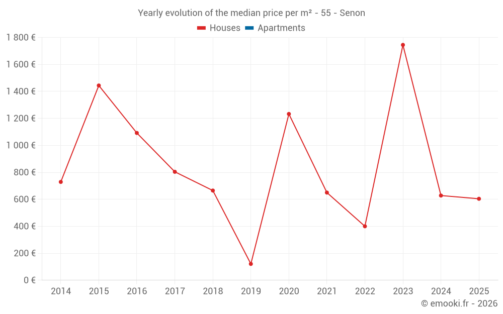 Real estate price map in the municipality of Senon, choose a section to see transactions by parcel.
