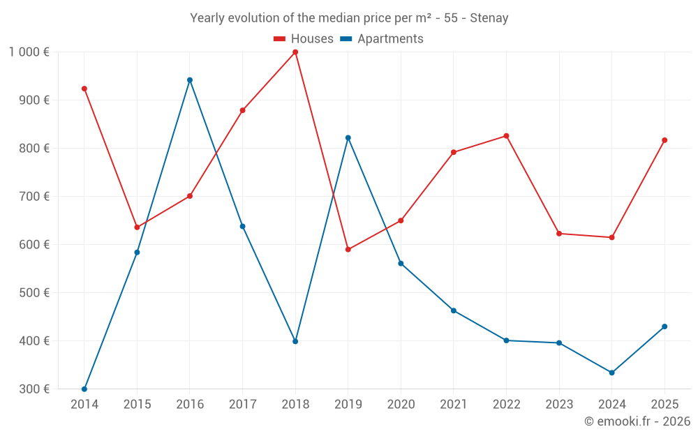What is the price per m2 of houses in Stenay?