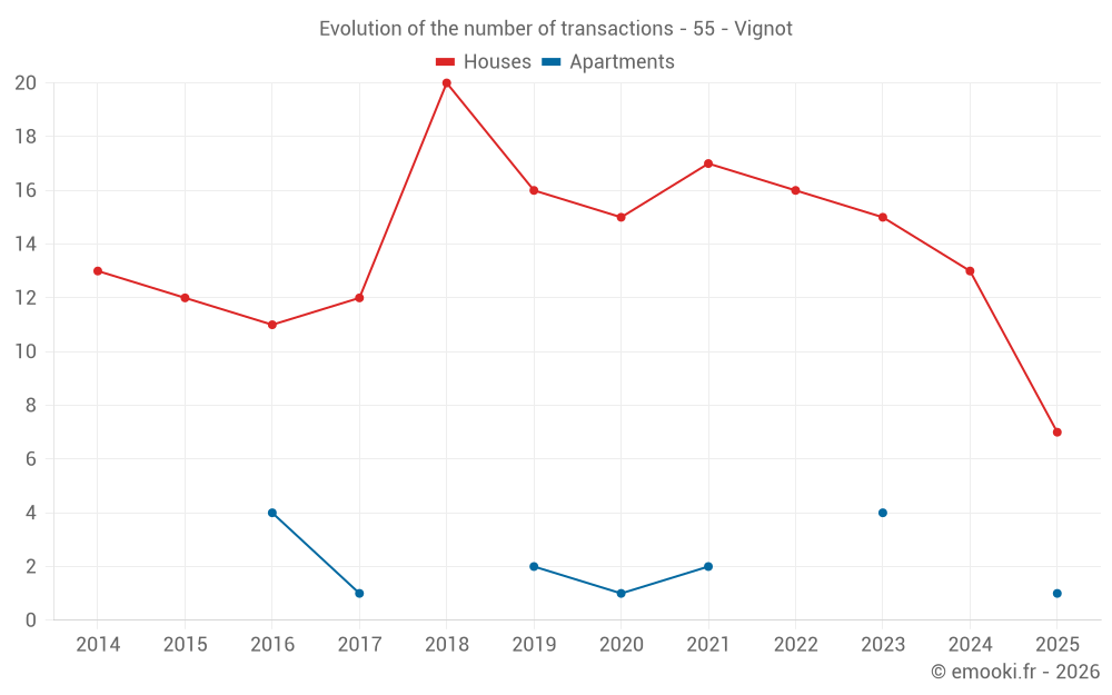 The median price on the 28 house transactions of the last 24 months in the municipality of Vignot was 1 090 € per square meter for a median property value of 109 750 €. Over this period, 60% of transactions were between 565 and 1 812 € per square meter (from the 2nd to the 8th deciles).