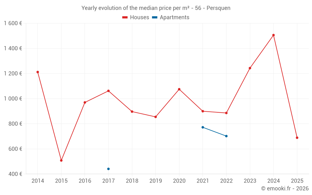Real estate price map in the municipality of Persquen, choose a section to see transactions by parcel.