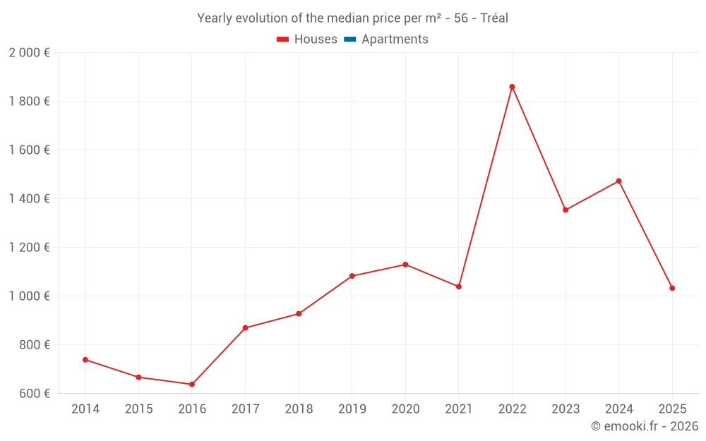 Evolution of the median price per m² of houses
