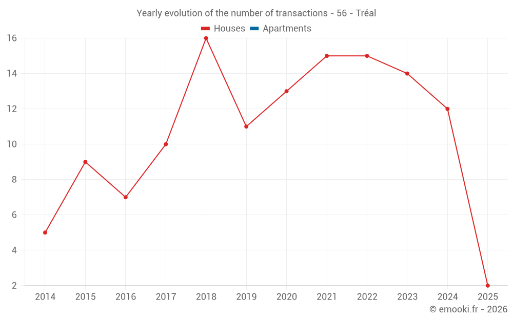 The median price on the 18 house transactions of the last 24 months in the municipality of Tréal was 1 272 € per square meter for a median property value of 97 500 €. Over this period, 60% of transactions were between 850 and 2 093 € per square meter (from the 2nd to the 8th deciles).