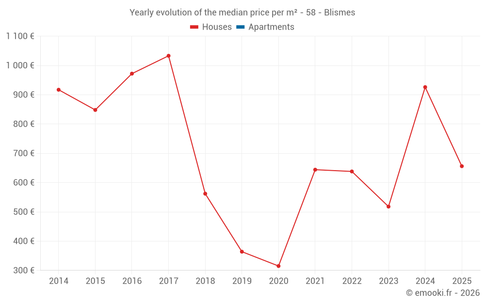 Real estate price map in the municipality of Blismes, choose a section to see transactions by parcel.