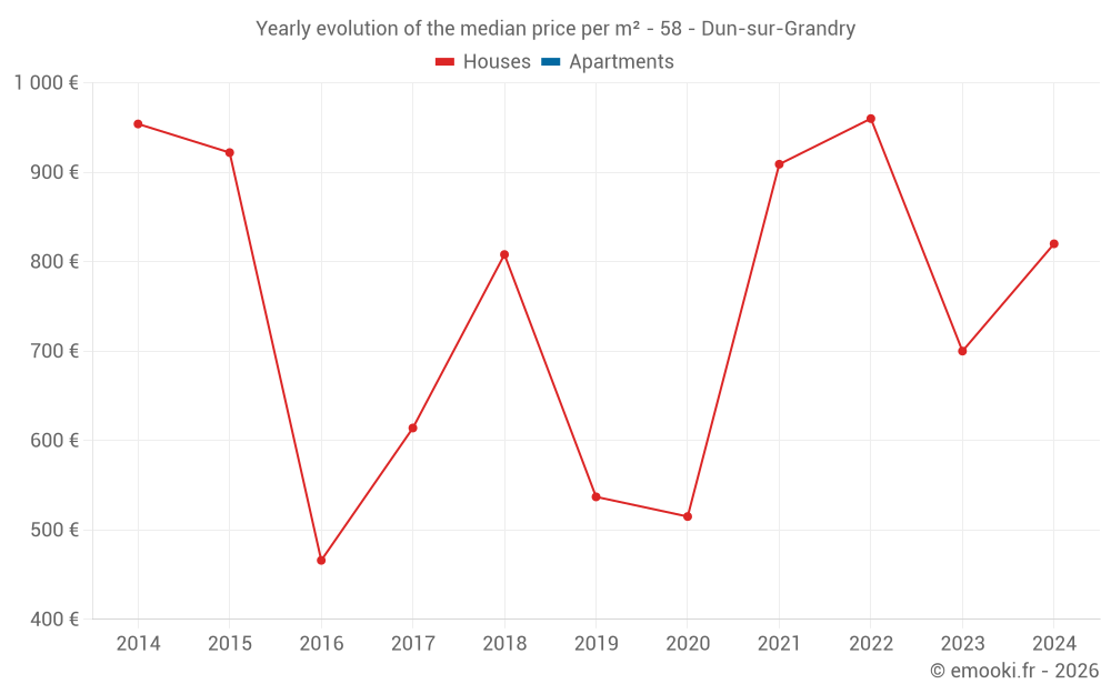 Real estate price map in the municipality of Dun-sur-Grandry, choose a section to see transactions by parcel.