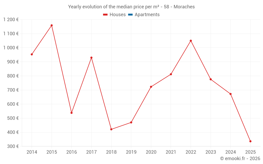 Evolution of the median price per m² of houses