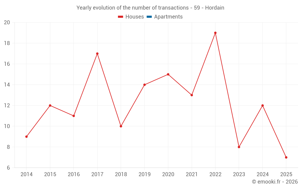 The median price on the 23 house transactions of the last 24 months in the municipality of Hordain was 1 452 € per square meter for a median property value of 135 000 €. Over this period, 60% of transactions were between 1 016 and 2 092 € per square meter (from the 2nd to the 8th deciles).