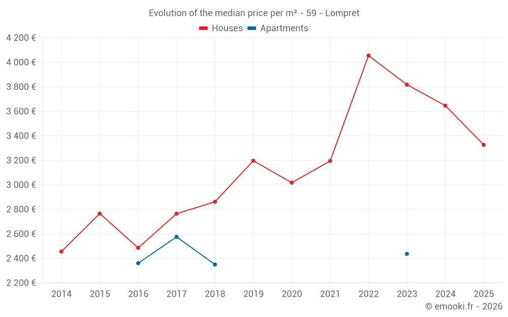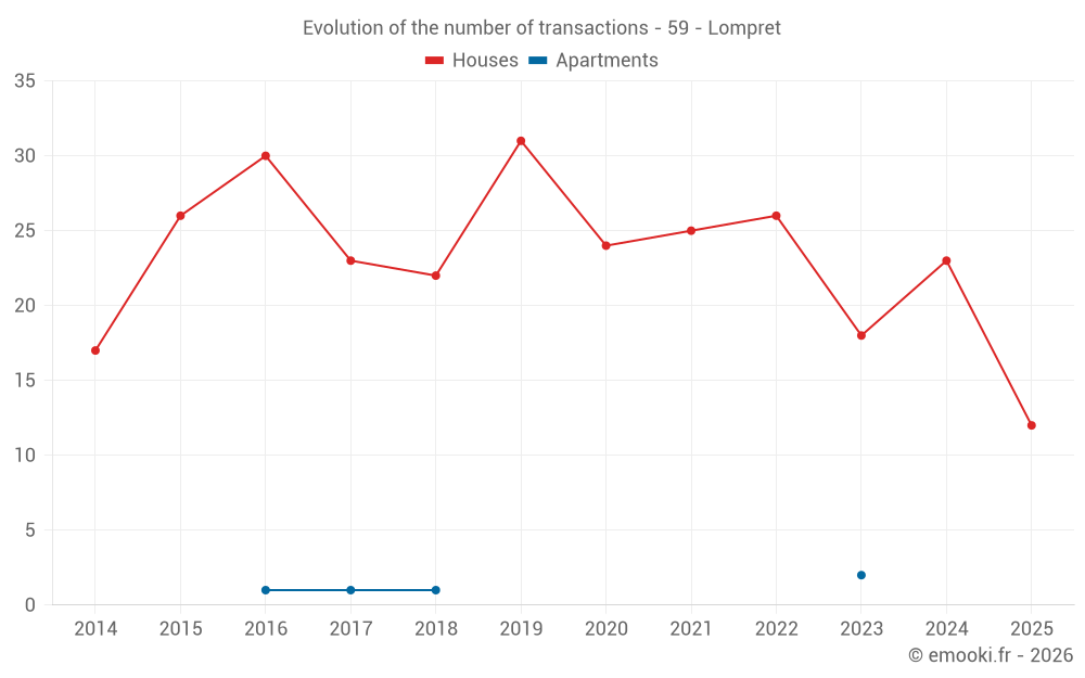 Median price on the 23 transactions of the last 12 months.
