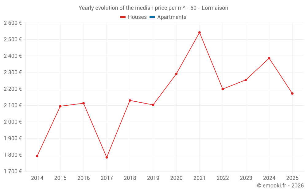 What is the price per m2 of houses in Lormaison?