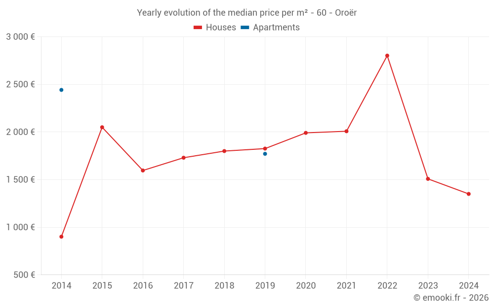 Evolution of the median price per m² of houses