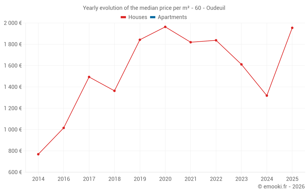 Real estate price map in the municipality of Oudeuil, choose a section to see transactions by parcel.