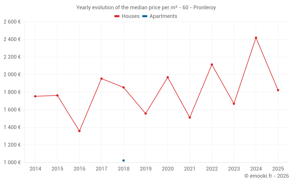 Real estate price map in the municipality of Pronleroy, choose a section to see transactions by parcel.