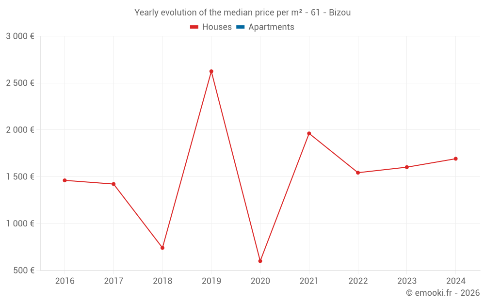 Real estate price map in the municipality of Bizou, choose a section to see transactions by parcel.