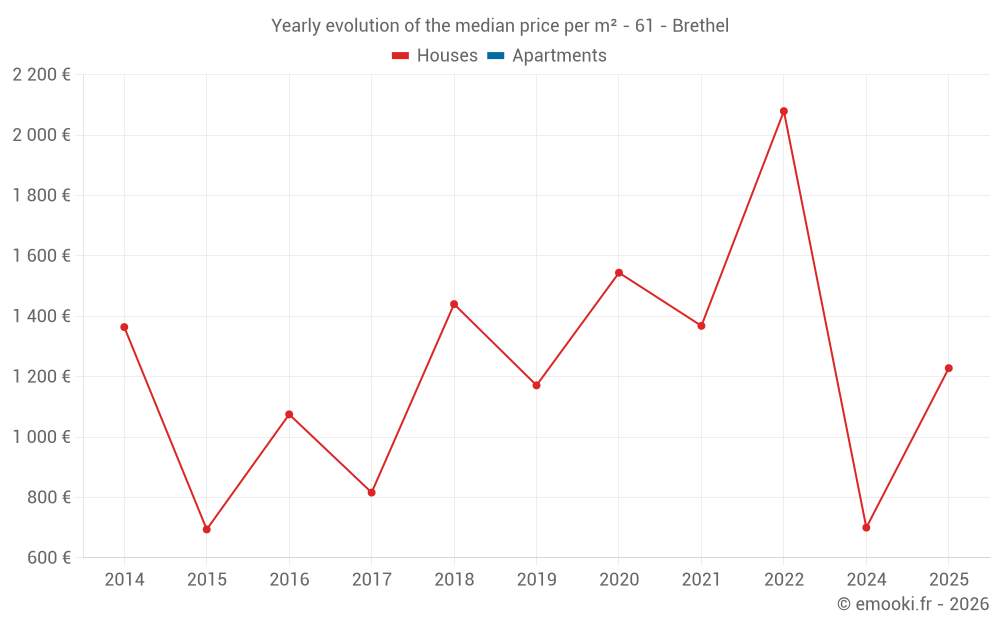 Evolution of the median price per m² of houses