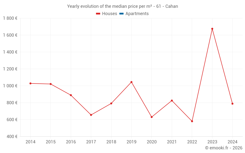 Evolution of the median price per m² of houses