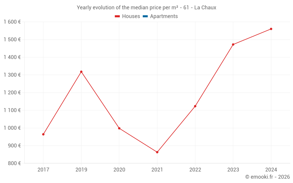Evolution of the median price per m² of houses