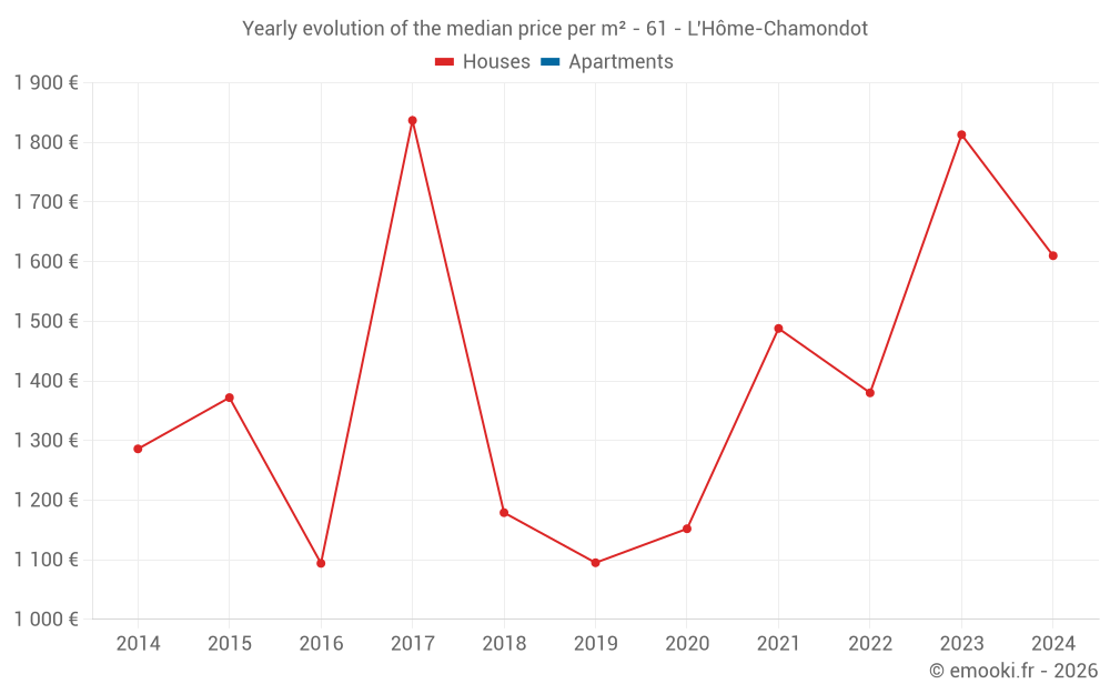 Real estate price map in the municipality of L'Hôme-Chamondot, choose a section to see transactions by parcel.
