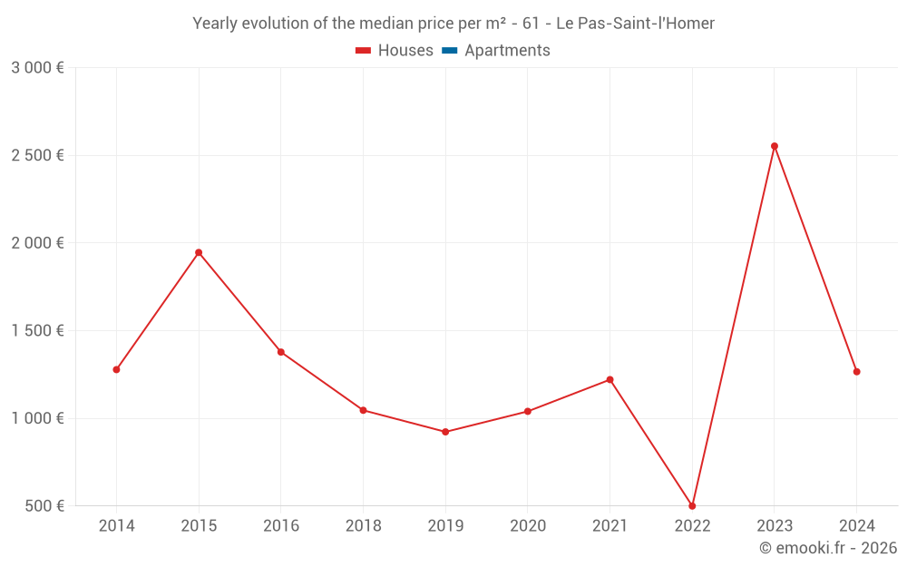 Evolution of the median price per m² of houses
