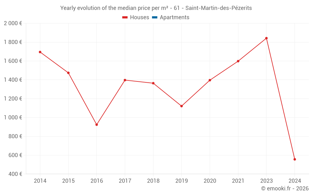Evolution of the median price per m² of houses