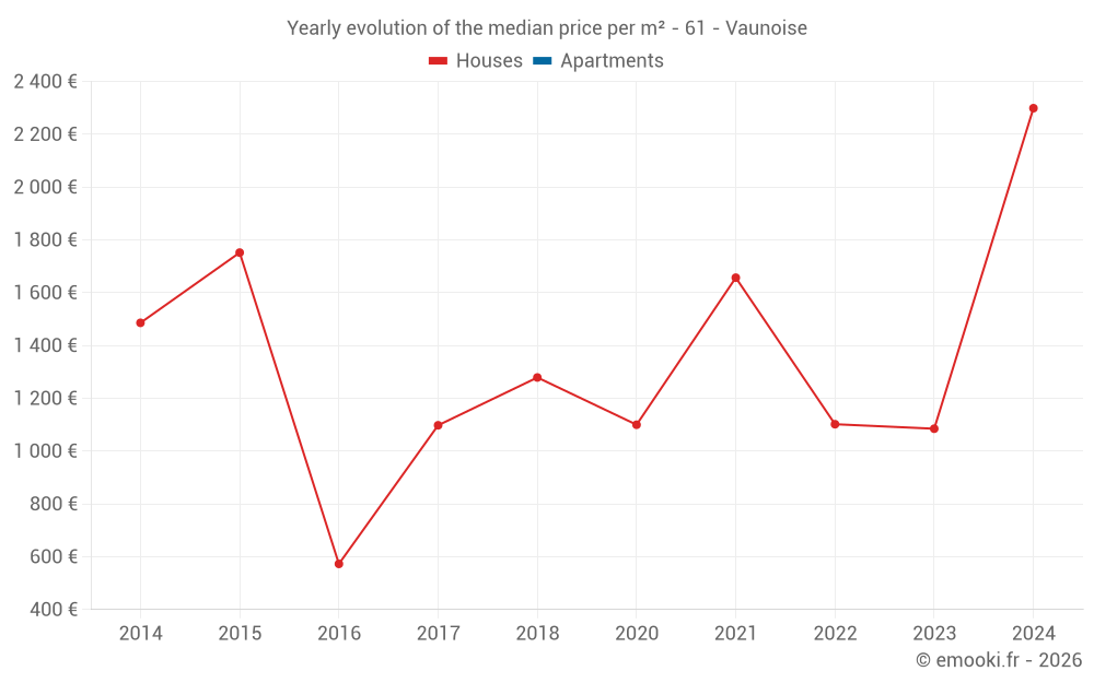 Evolution of the median price per m² of houses