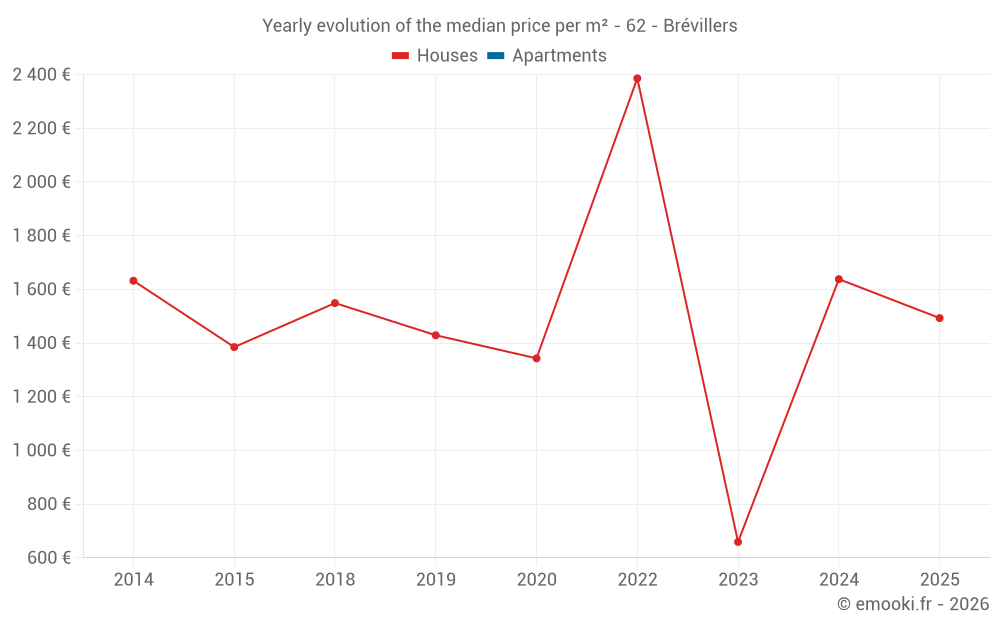 Evolution of the median price per m² of houses