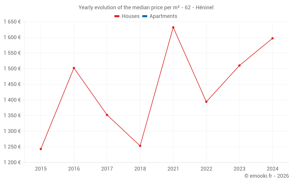 Real estate price map in the municipality of Héninel, choose a section to see transactions by parcel.